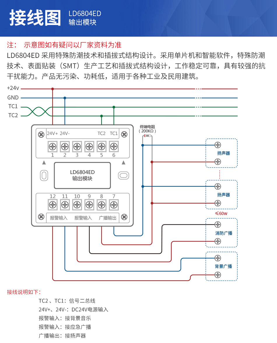 1、LD6804ED輸出模塊為二總線,無(wú)極性。